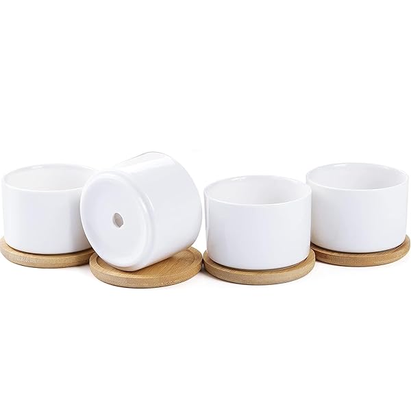 陶器鉢 ホワイト 穴付き 受け皿付き 円筒形 鉢 4点セット