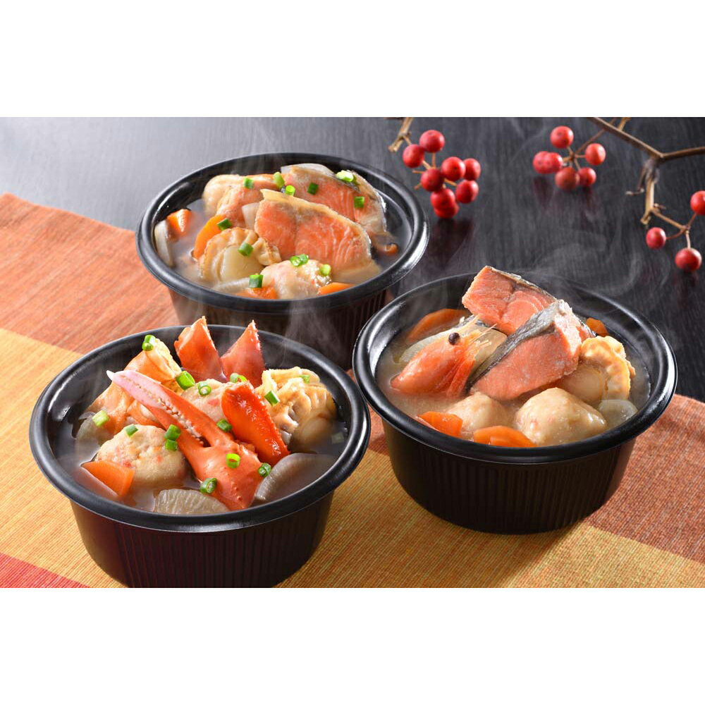 ●レンジで温めるだけで、すぐに食べられる、本格海鮮小鍋とおこ