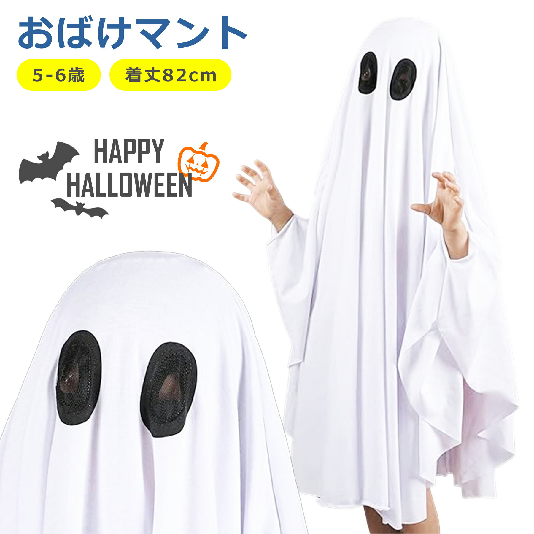 【商品説明】ハロウィンキッズ用おばけマント(5-6歳、着丈8