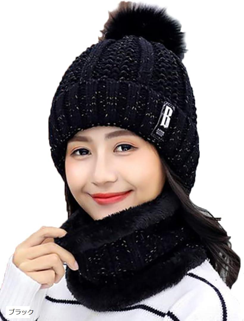 「かわいいニット帽&ネックウォーマーセット」大きめのポンポン