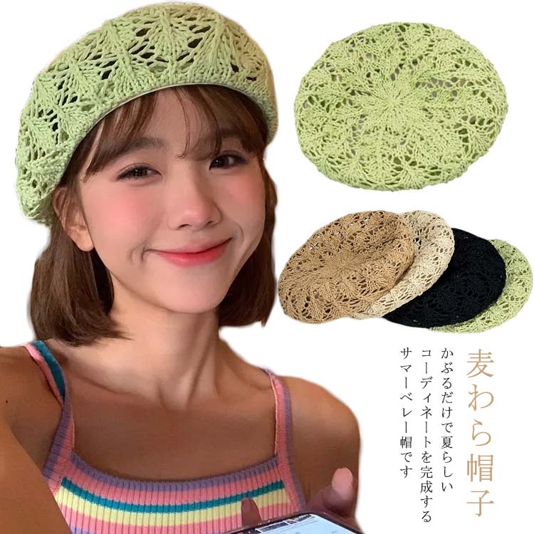 レディース ベレー帽 麦わら帽子 ストロ