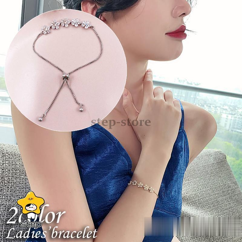 フラワーモチーフがおしゃれなレディース用ブレスレット。スライ
