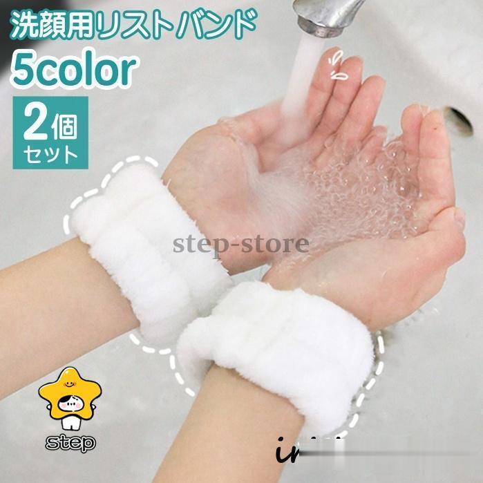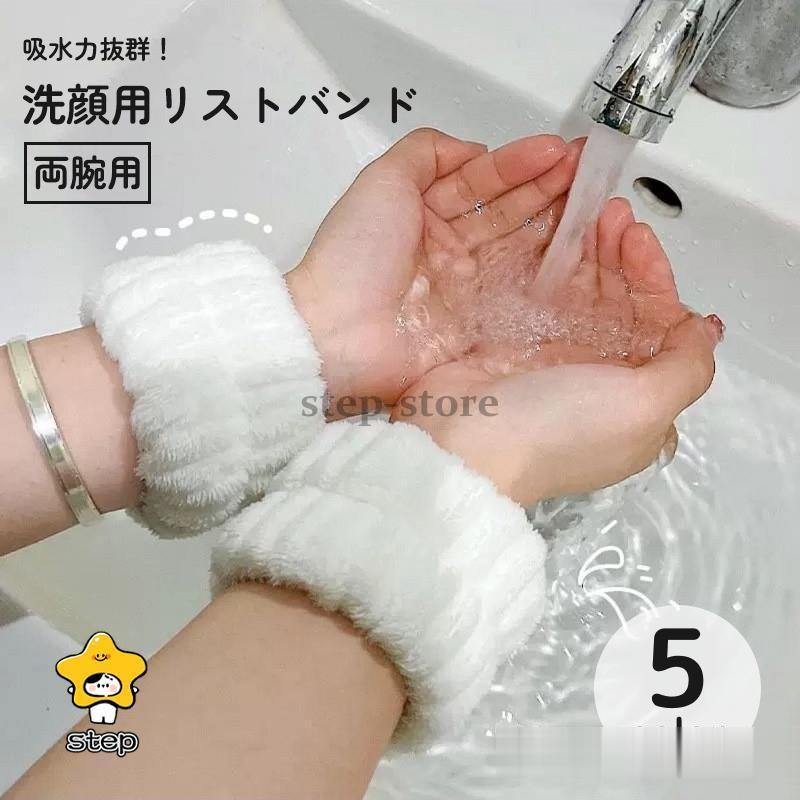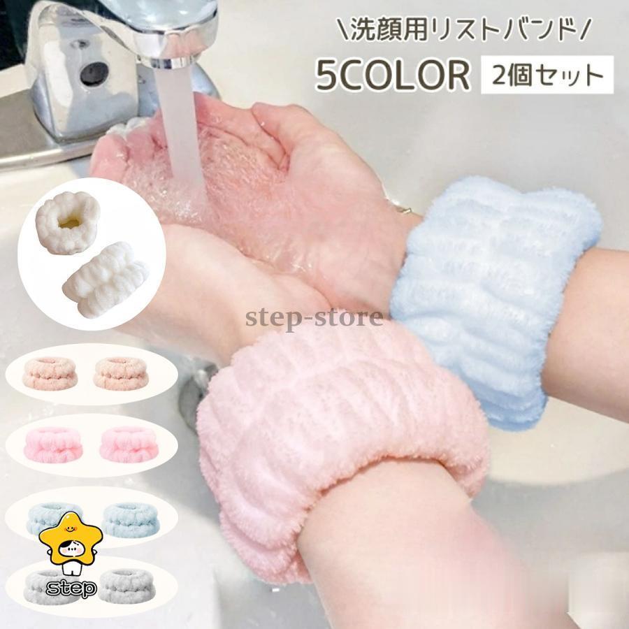 洗顔時の裾漏れを防ぐ◎ふわふわ素材のリストバンド同色2個セッ