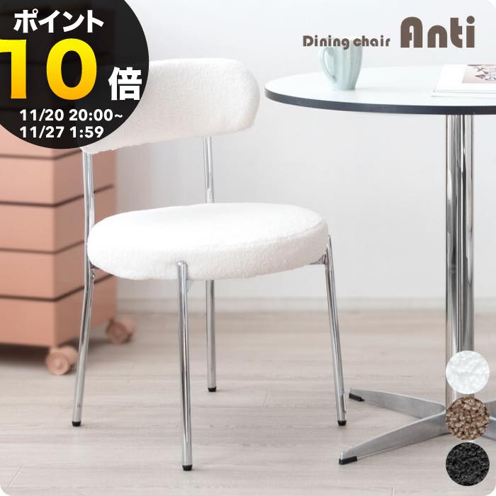ふわもこなブークレ生地とシルバーフレームの丸くて可愛いダイニ