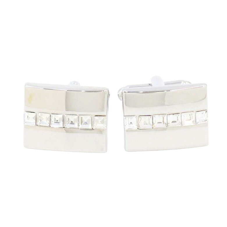 \シルバーの輝きと高級感が漂う、ラインストーンカフスボタン/