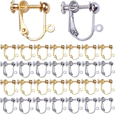 イヤリングパーツ 40個セット ネジバネ式 耳穴なし アクセ