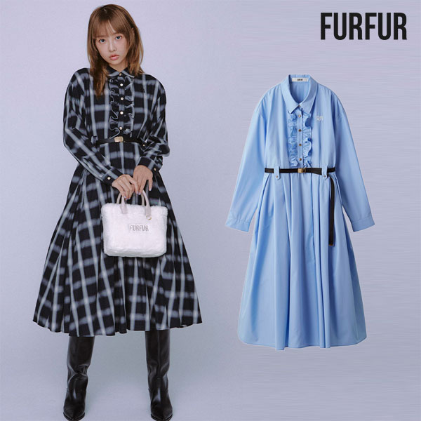- FURFUR - ベルト付きフリルシャツワンピース -