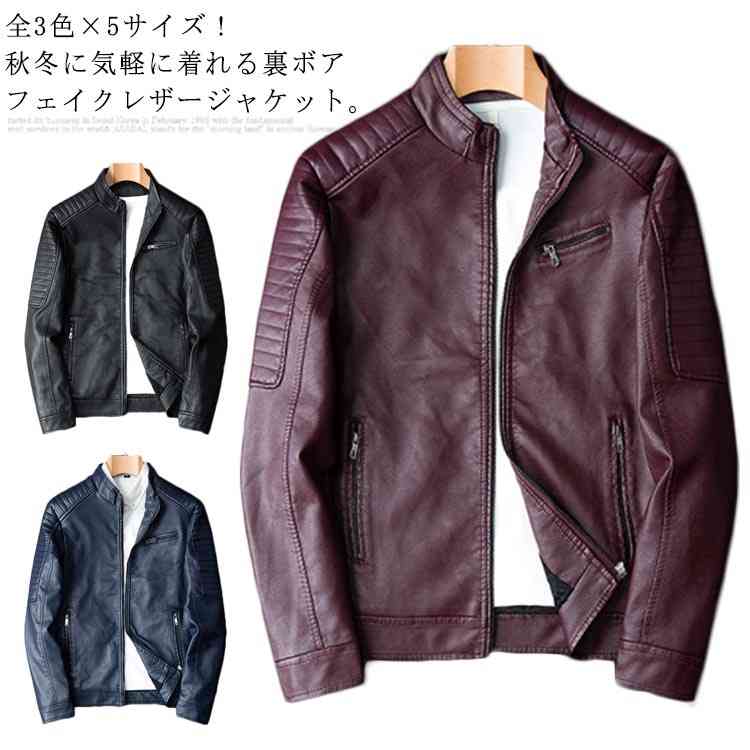 全3色×5サイズ!秋冬に気軽に着れる裏ボアフェイクレザージャ