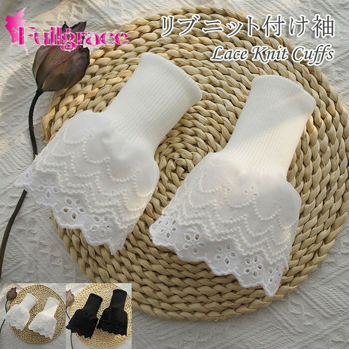 付け袖 レース リブニット レディース
