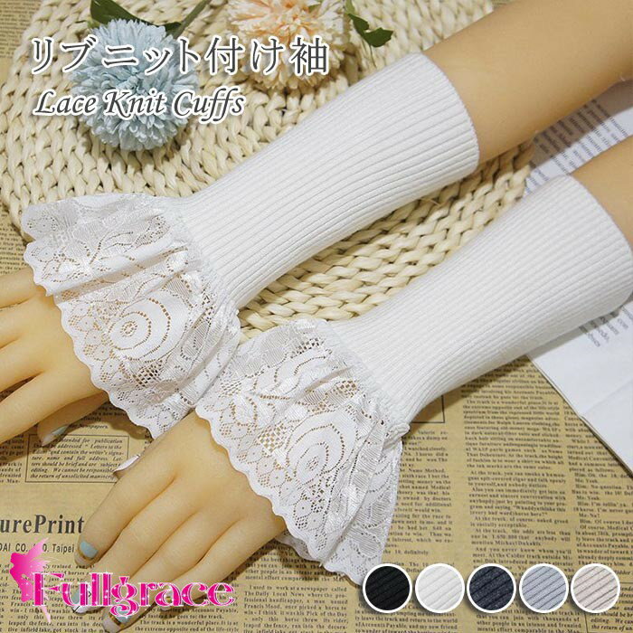 付け袖 レース リブニット ロング レデ