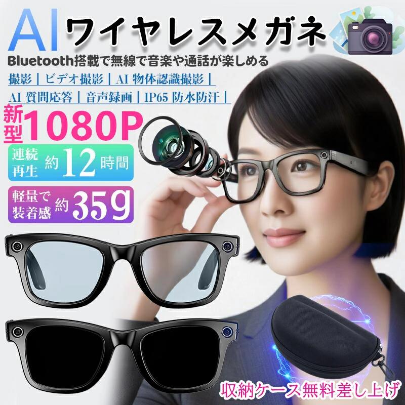 【1年保証付き】スマートグラス カメラ付き 録画 録音 映像