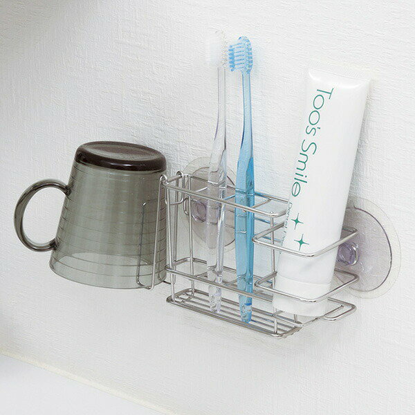 歯みがき用品をスリムに壁面収納【レック】吸盤で取り付けできる