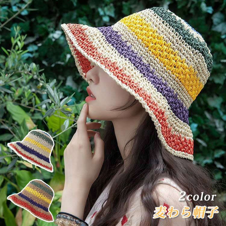 麦わら帽子 バケット ハット レディース