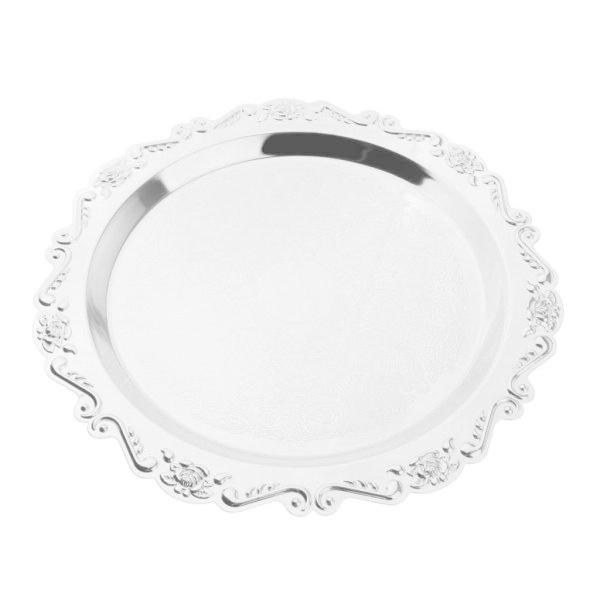 銀製の円形の金属のフルーツの皿のペストリ