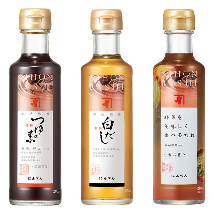本枯鰹節、鯖節、宗田鰹節と有機丸大豆の白醤油を使用し、淡色で