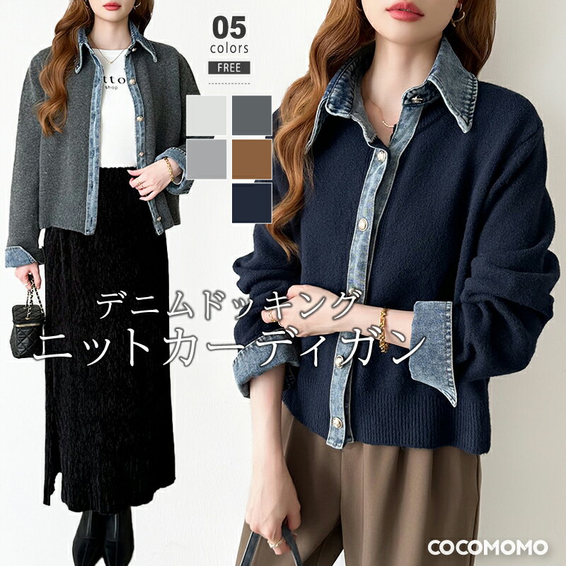 デニム×ニットをドッキングさせた レイヤード風カーディガン。