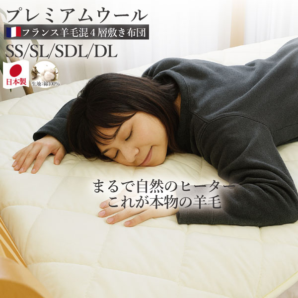 フランス産 羊毛 4層 敷き布団 極厚