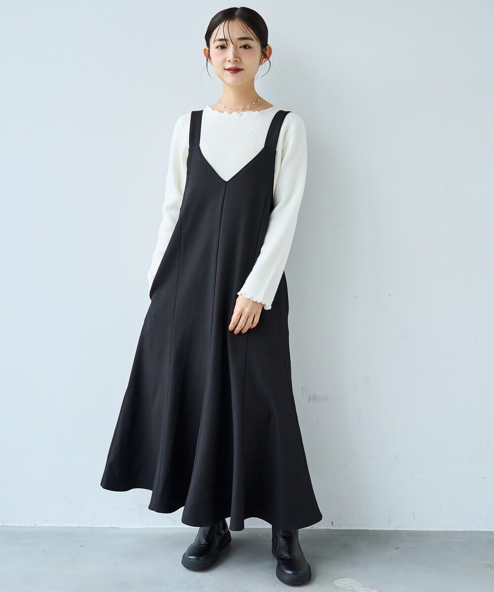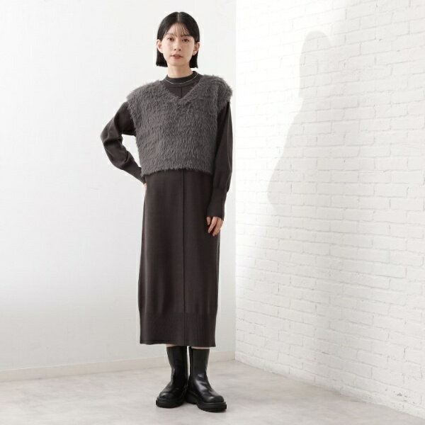 リブニット素材で仕立てた、フェミニンな雰囲気のニットワンピー