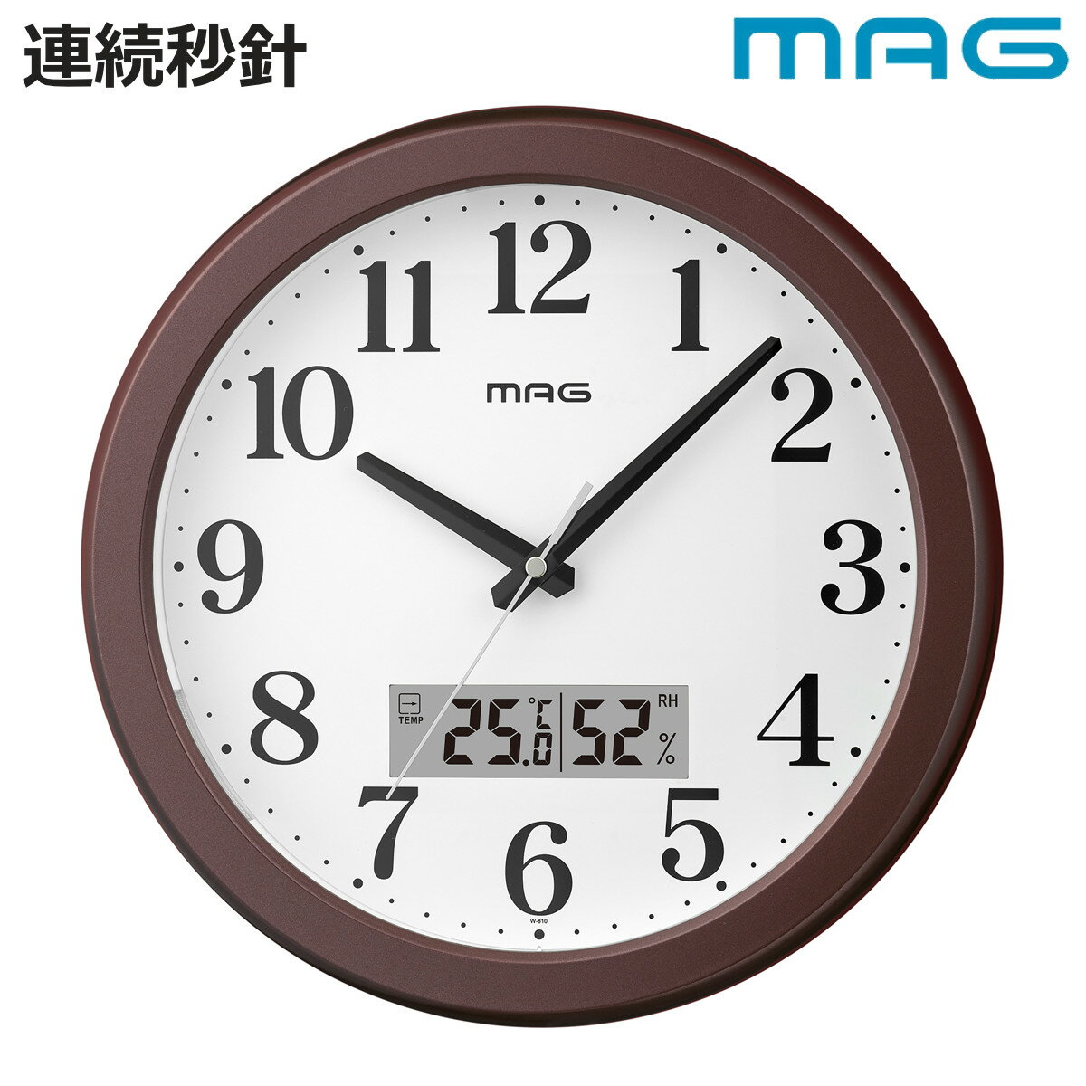 掛け時計 連続秒針 静音 温湿度計付き