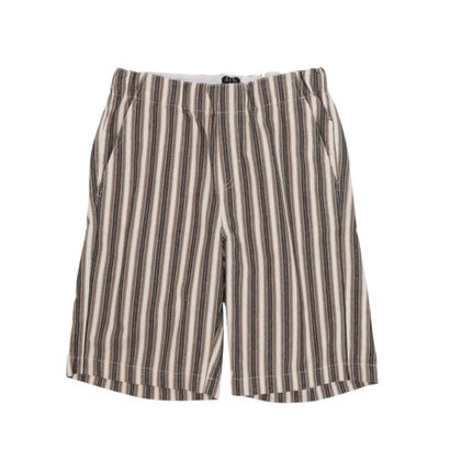 落ち着いた色合いのストライプが特徴のハーフパンツ。程よい丈感