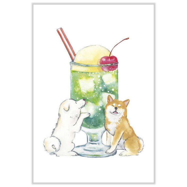 おいしそうなおやつと愛らしいしばいぬがみずみずしいタッチで描
