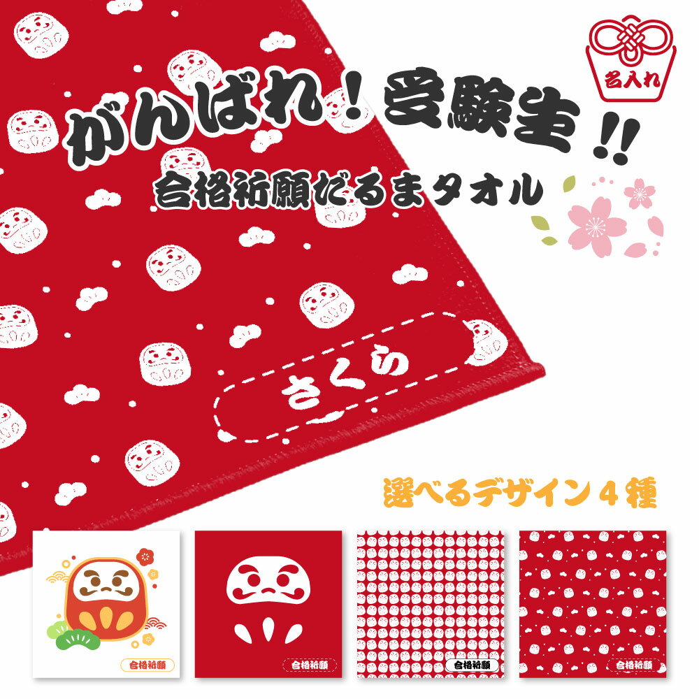合格祈願だるまをモチーフにした、名前入りの昇華転写タオル。