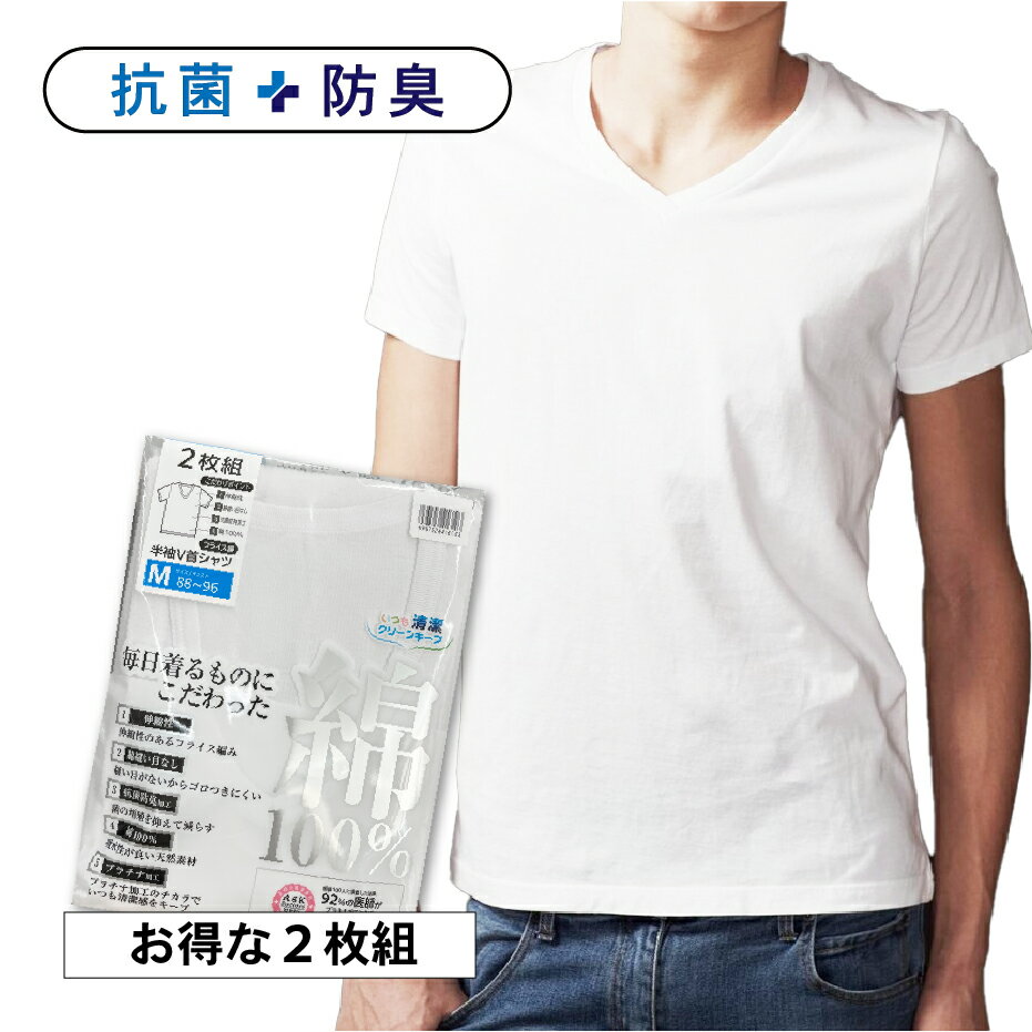 商品名 抗菌防臭プラチナ加工Tシャツ2枚セット(V首) サイ