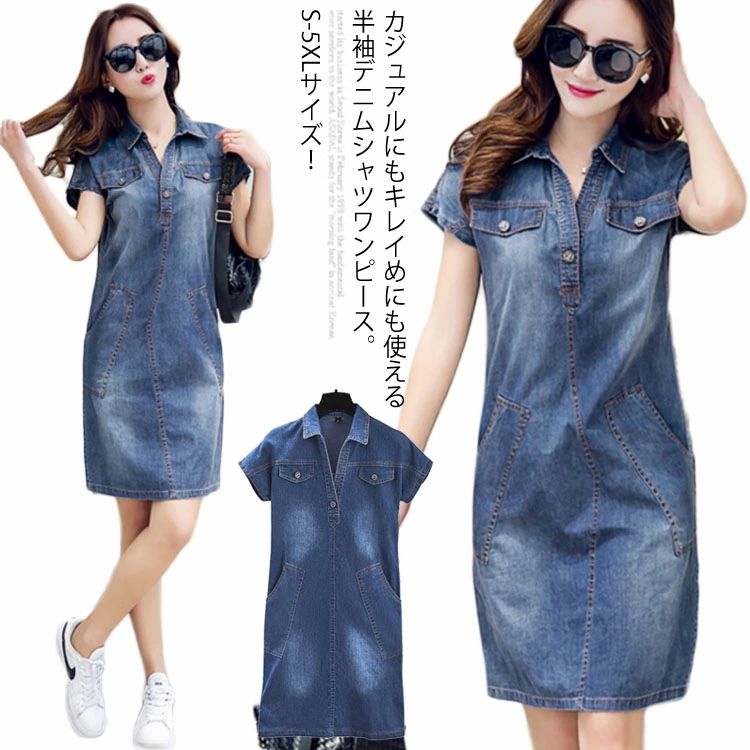 S-5XLサイズ!デニムワンピース ワン
