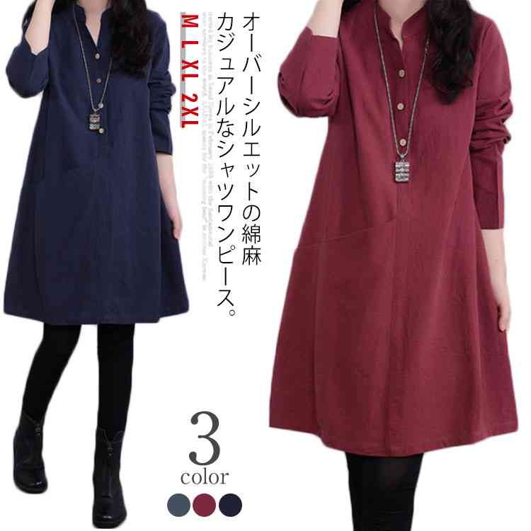オーバーシルエットの綿麻カジュアルなシャツワンピース。 羽織