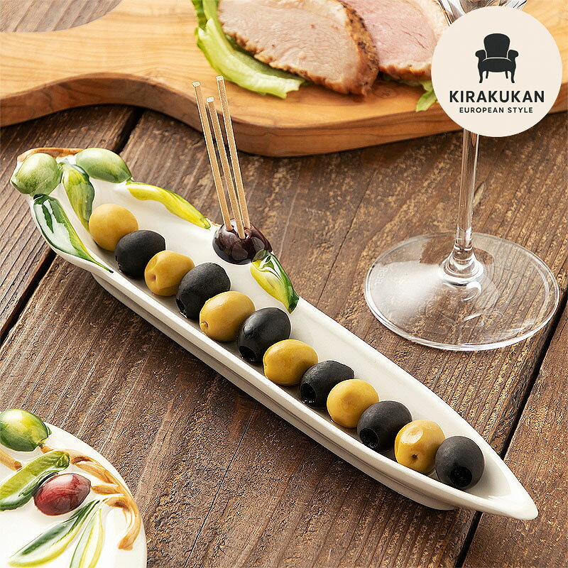 商品名オリーブ柄 ロングプレート28cm オリーブ皿 ようじ