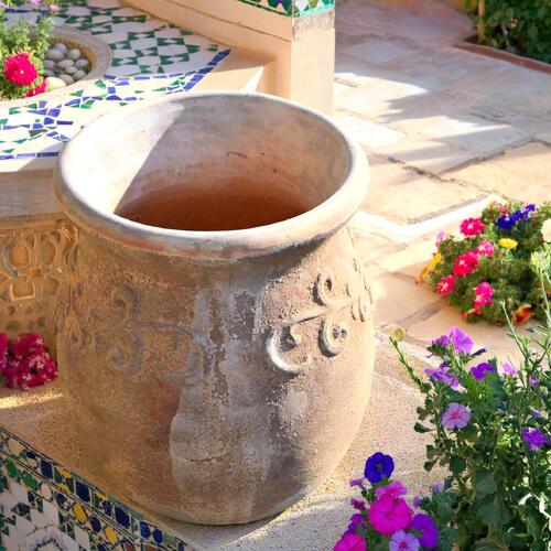 アラビアンナイトに出てきそうな不思議な雰囲気の植木鉢です。