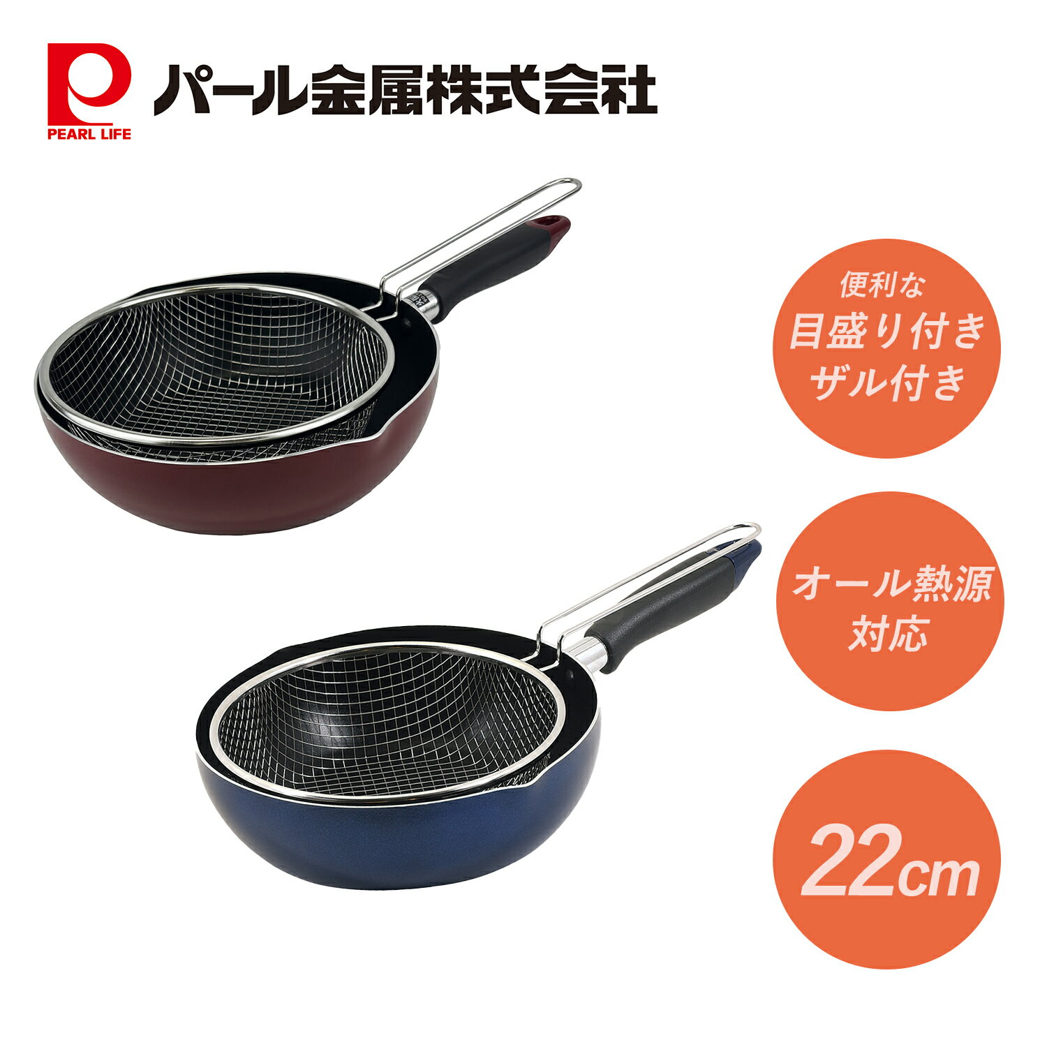 ■商品名 ふっ素加工IH対応目盛・ザル付料理フライパン22c
