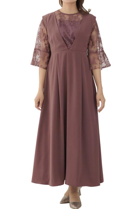 [MORE AUNI] パーティー ドレス 結婚式 レース
