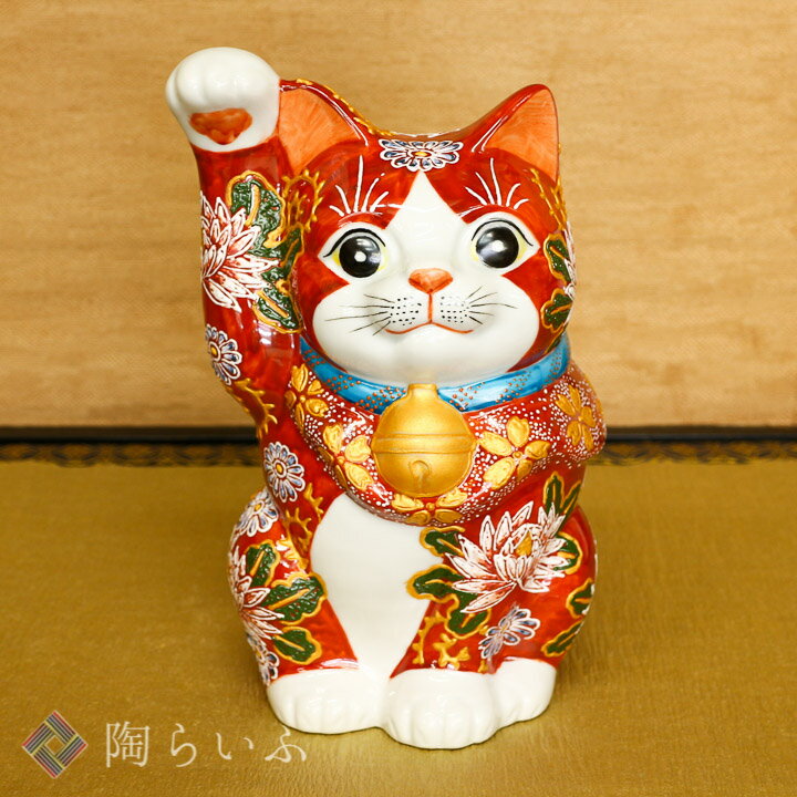 【九谷焼】8号招猫 赤地華盛【九谷焼】8号招猫 赤地華盛 商