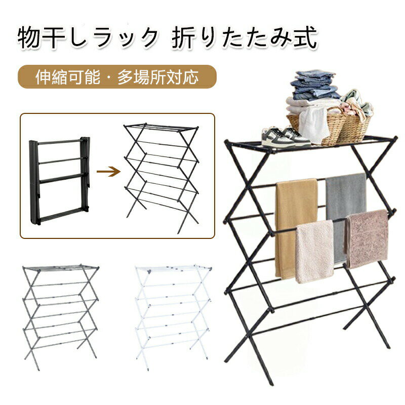 【商品説明】折りたたみ伸縮物干しスタンド|多場所対応で省スペ