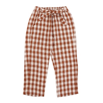 ウエストリボンがアクセントになったギンガムチェック柄パンツで