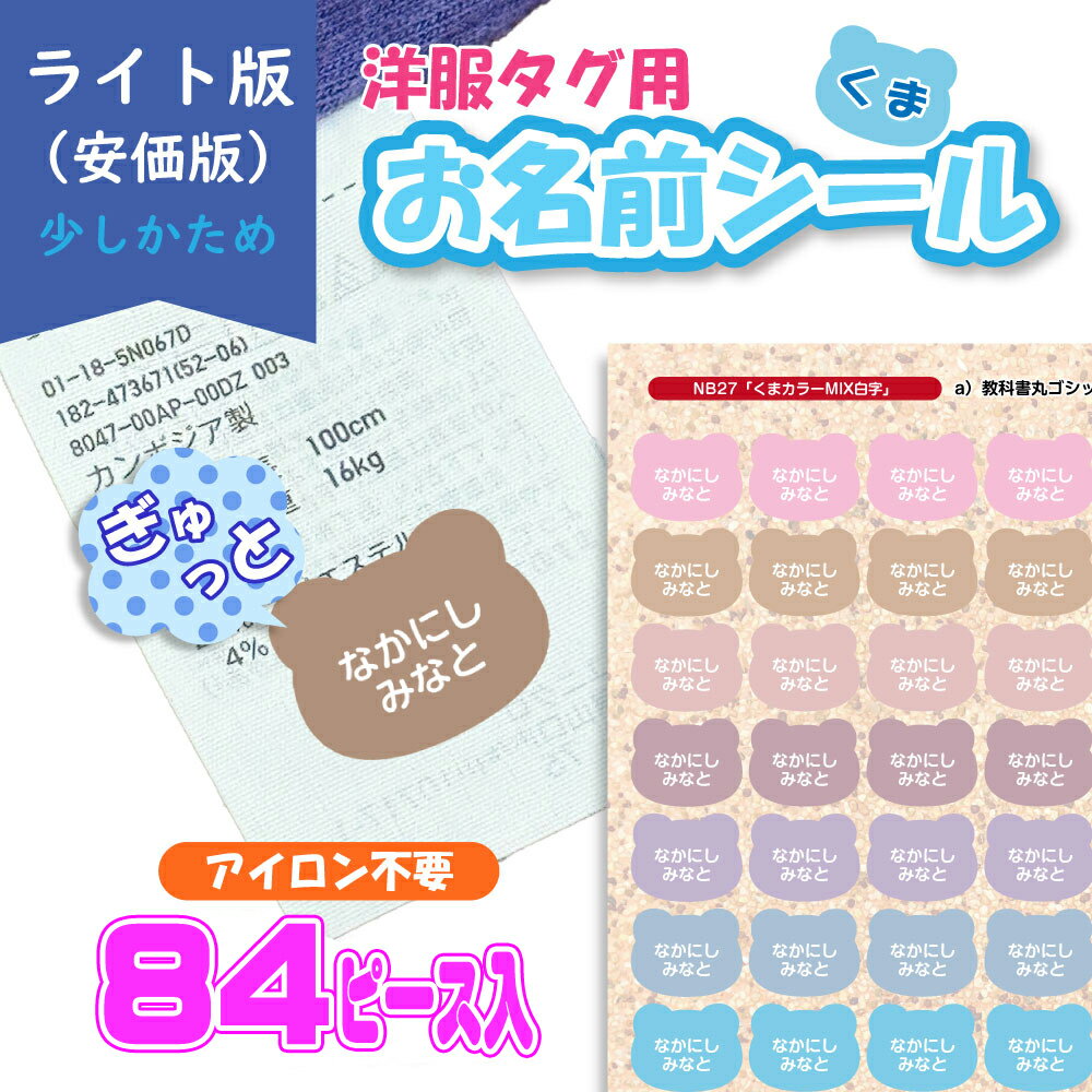 人気のタグ用ノンアイロンお名前シールのライト版 タグにペタッ