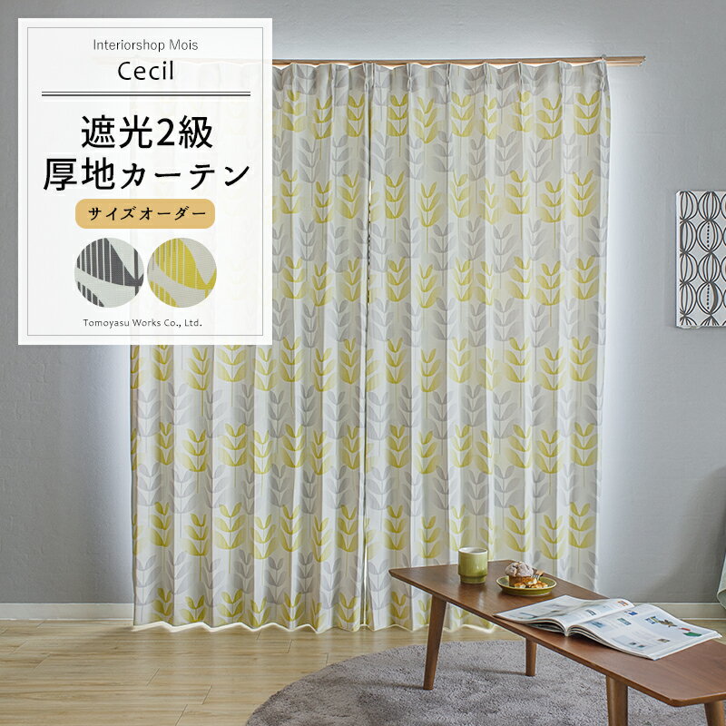 遮光 カーテン 2級 リーフ柄カーテン