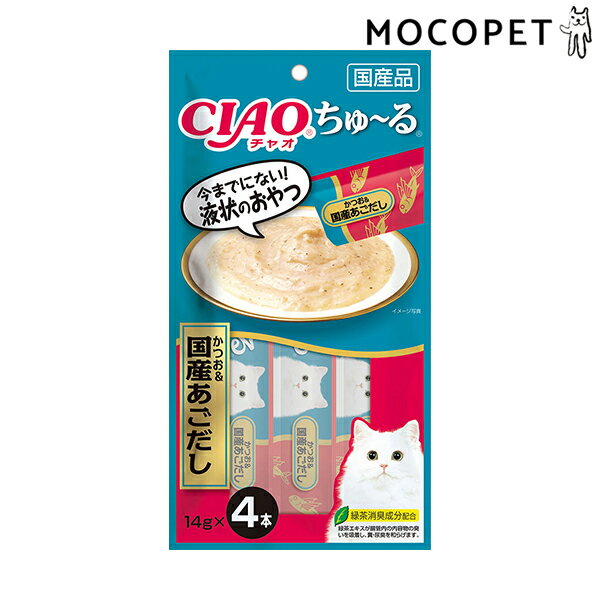 [商品名称]【最大400円OFFクーポン※要取得&LINE追加で500円OFF!】チャオちゅ〜る かつお&国産あごだし 14g×4本入 / ちゃおちゅーる 国産 チャオチュール 猫 CIAO いなば #w-159297