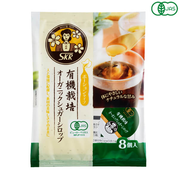 [商品説明]サクラ食品 オーガニックシュガーシロップ は、有機栽培さとうきびから作られた有機砂糖をシロップにしました。 有機JASマーク付。 素材が持つ自然な色と風味を大切にした、ナチュラルな甘味のシロップです。 使いやすい個包装のポーション入りです。 ☆コーヒー、紅茶などの飲み物の甘味付けに。 ☆ヨーグルトや各種デザートやお料理などにもお使いいただけます。 ※サトウキビの繊維が集まり浮遊・沈殿する事がありますが品質には問題ございません。 ※砂糖の収穫により色のばらつきがありますが品質には問題ございません。 ※開封時に中身が飛び散ることがありますので、フタはゆっくりと開けてください。 <サクラ食品> 創業1977年。始まりはコーヒーシュガーの製造でした。 時代の変化とともにポーションタイプのガムシロップや希釈飲料、介護食ゼリーの製造など多岐に渡って生産しております。 それでもまだ私たちは、満足していません。 「より多くのお客様に"おいしい"をお届けしたい。」 その想いを胸に抱き、常に新しい商品づくりに挑戦しています。 ■商品名:サクラ食品 オーガニックシュガーシロップ 甘味料 シロップ オーガニック 有機栽培 さとうきび 有機砂糖 甘味 個包装 ■内容量:120g ■原材料名:有機砂糖(ブラジル製造) ■栄養成分表示:1個(15g)あたり エネルギー:36kcal たんぱく質:0g 脂質:0g 炭水化物:9.1g 食塩相当量:0g ■メーカー或いは販売者:サクラ食品 ■賞味期限:開封前:1年 ■保存方法:直射日光を避け、常温で保存してください。 ■区分:食品 有機JAS ■製造国:ブラジル【免責事項】 ※記載の賞味期限は製造日からの日数です。実際の期日についてはお問い合わせください。 ※自社サイトと在庫を共有しているためタイミングによっては欠品、お取り寄せ、キャンセルとなる場合がございます。 ※商品リニューアル等により、パッケージや商品内容がお届け商品と一部異なる場合がございます。 ※メール便はポスト投函です。代引きはご利用できません。厚み制限(3cm以下)があるため簡易包装となります。 外装ダメージについては免責とさせていただきます。