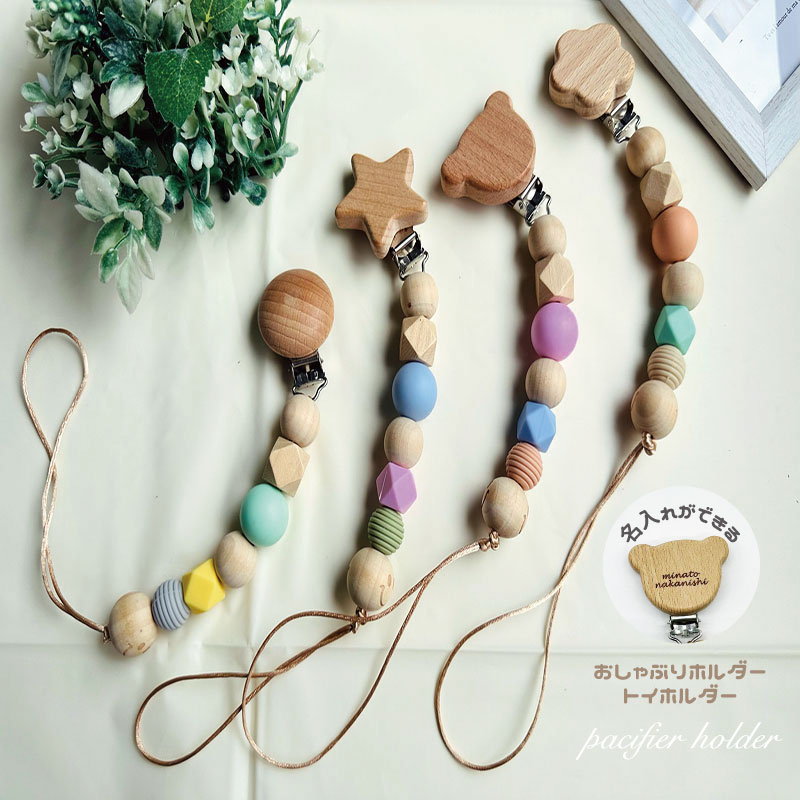 [キャッチコピー]お名前刻印ができる おしゃぶりホルダー 出産祝い ギフトママ プレゼント おしゃれ シンプル 名入れ 1歳 誕生日 歯固めホルダー木製 クリップ ベビーグッズ ベビー用品