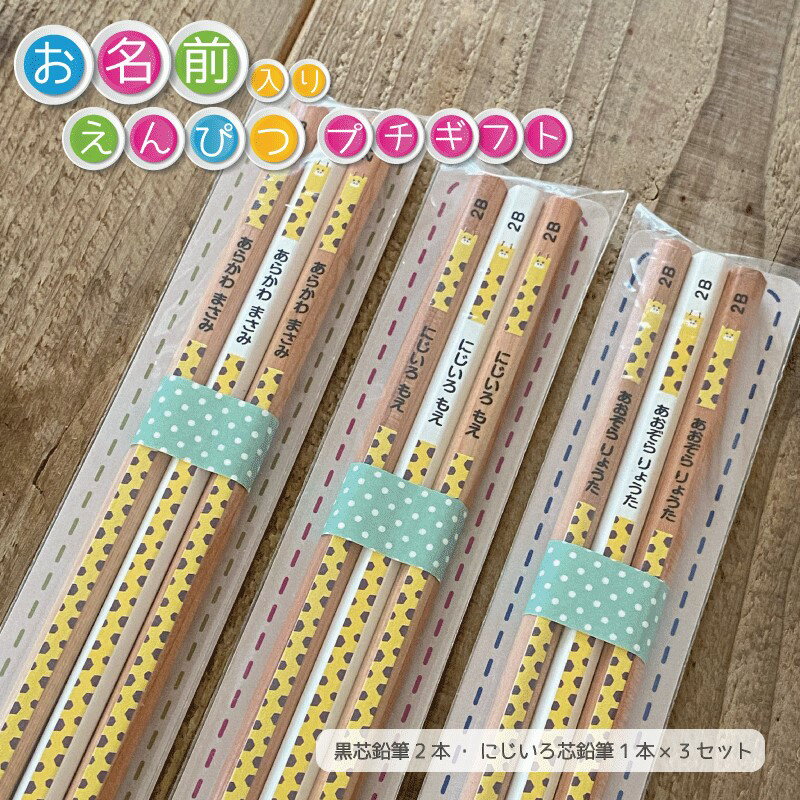 鉛筆3本プチギフト☆虹色鉛筆入り 【スティック動物シリーズ】 名入れ・鉛