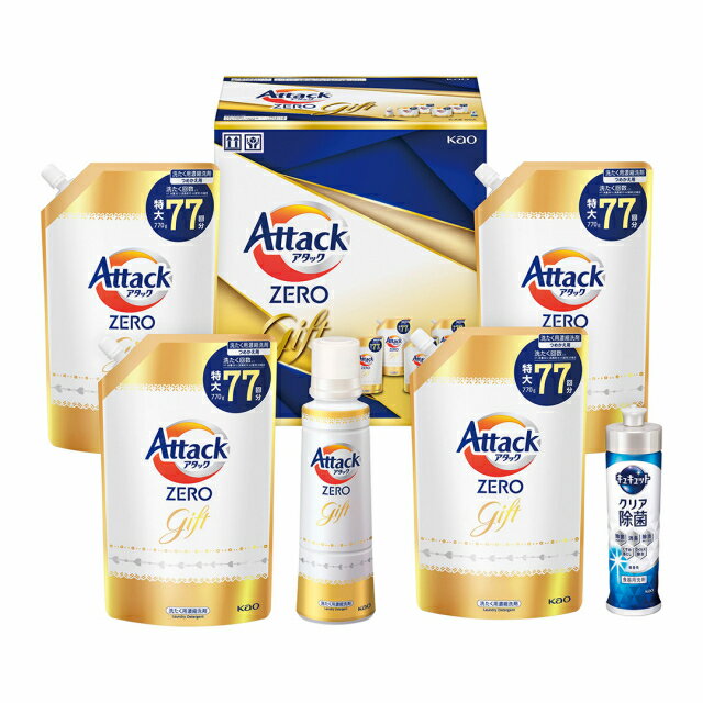 [商品説明]一年の感謝を込めて、「使えるギフト」を贈りませんか。アタック液体史上最高の清潔力のアタックZEROとキュキュットが入ったセット■仕様・セット内容:●アタックZERO本体(580g)×1、アタックZERO詰替用(770g)×4、キュキュットクリア除菌本体(220ml)×1・箱サイズ:約:25.1×16.6×28cmご注文時の注意点です。必ずご確認ください。■「お歳暮のし」をご選択いただいた場合は、11月25日(火)から順次発送します。 ■ご希望のお届け日がある場合は、「配達希望日」にて入力をお願い致します。■こちらは、お客様のご事情での返品はお受けいたしかねます。■長期ご不在やご転居などのご理由により、お受け取りが頂けない場合、衛生上の理由により返送となりますが、再送・ご返金等は致しかねます。■こちらの商品は、代金引換のお支払方法がお受けできません。【発送完了ご報告メールについて】お申込みの集中や出荷元の稼働日などにより「発送完了ご報告メール」の配信が、出荷日以降やお届け完了後となってしまう場合がございます。