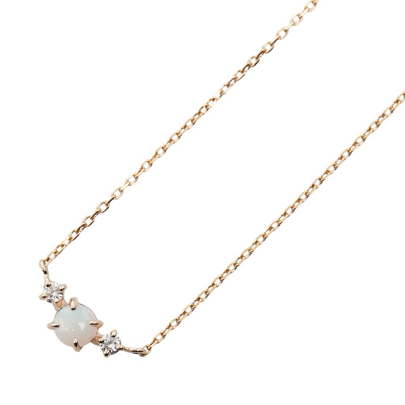 [商品名称]エテ K18YG イエローゴールド オパール ダイヤ0.03ct プチ ペンダントネックレス レディース ete 【中古】