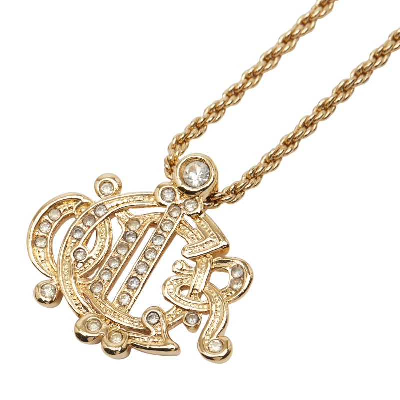 [商品名称]ディオール ロゴ ラインストーン ネックレス ゴールド メッキ レディース Dior 【中古】