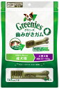 [商品説明]歯磨き専用ガムの定番グリニーズのラージサイズ。 体重22〜45キロ位の子に1日1本与えて下さい。 正規品 日本の愛犬の為に独自に設計されたグリニーズプラス。食物アレルギーにも配慮されされた歯みがき専用ガムです。グリニーズ6つの優れた特長1、米国獣医認定の確かな歯みがき効果、2、抜群の消化性、3、優れた栄養バランス(総合栄養食)、4、こだわりの自然素材、5、抜群のおいしさ、6、噛みやすさと安全性を考慮した硬さ 【原材料】小麦粉、小麦タンパク、ゼラチン(豚由来)、米粉、オーツ麦繊維、エンドウタンパク、ポテトタンパク、タンパク加水分解物、乾燥リンゴ、乾燥トマト、粗挽き亜麻仁、緑茶抽出物、グリセリン、レシチン、ビタミン類(A、B1、B2、B6、B12、D3、E、コリン、ナイアシン、パントテン酸、ビオチン、葉酸、)、ミネラル類(カリウム、カルシウム、クロライド、セレン、マグネシウム、マンガン、ヨウ素、リン、亜鉛、鉄、銅)、着色料(銅葉緑素) 【保証成分】 タンパク質32.0%以上、脂質5.0%以上、粗繊維5.0%以下、灰分5.0%以下、水分15.0%以下 【エネルギー】 137kcl(1本あたり) 【給与方法】 おやつとして1日1本を目安に与えてください。 【商品サイズ】 250×180×47 【原産国または製造地】 アメリカ合衆国 【諸注意】 体重22Kgから45Kgの6ヶ月以上の大型犬に与えて下さい。