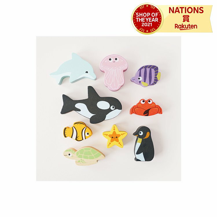 [商品名称]アニマルスタッカー オーシャン ルトイヴァン イギリス 英国 ロンドン カラフル かわいい おもちゃ 動物のモチーフ 木のおもちゃ 木製ブロック 巾着収納袋付 安心 安全