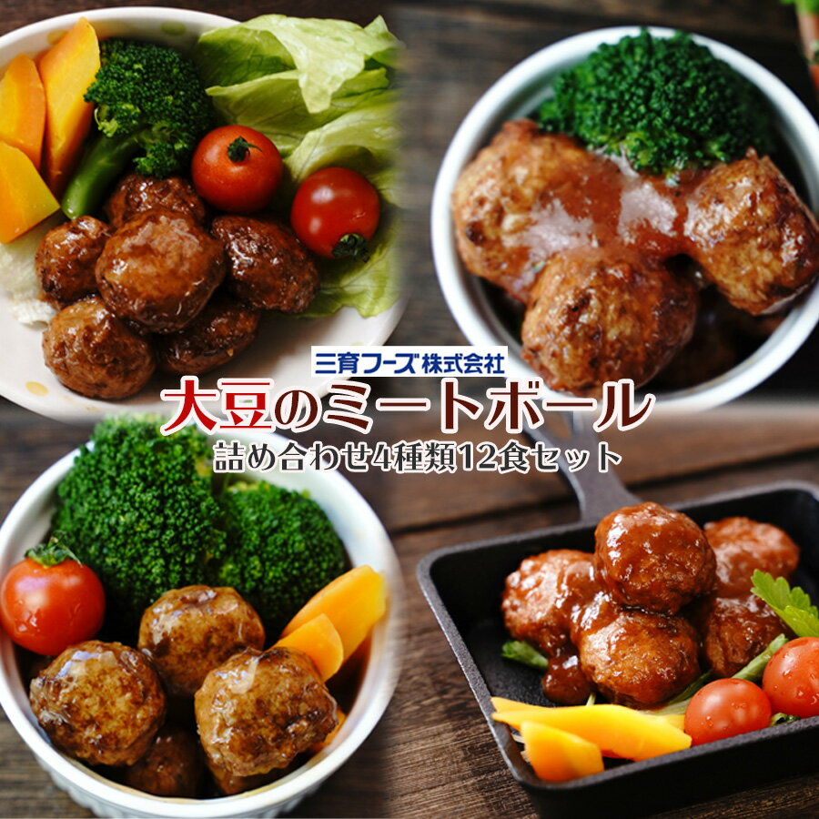[商品名称]レトルト 惣菜 三育フーズ 大豆ミートを使ったミートボール お試し 詰め合わせ 4種12食セット ヘルシー 野菜 ベジタリアン 弁当 ランチ