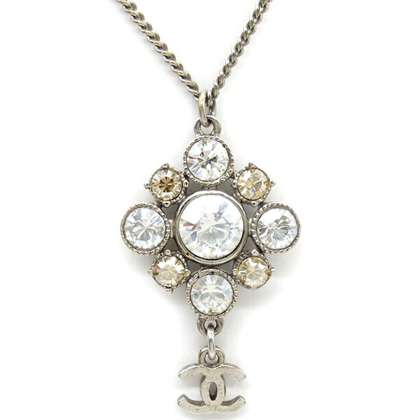 [キャッチコピー]シャネル CHANEL アクセサリー ココマーク ネックレス CCマーク ひし形 ラインストーン スウィング メタル シルバー 美品 送料無料