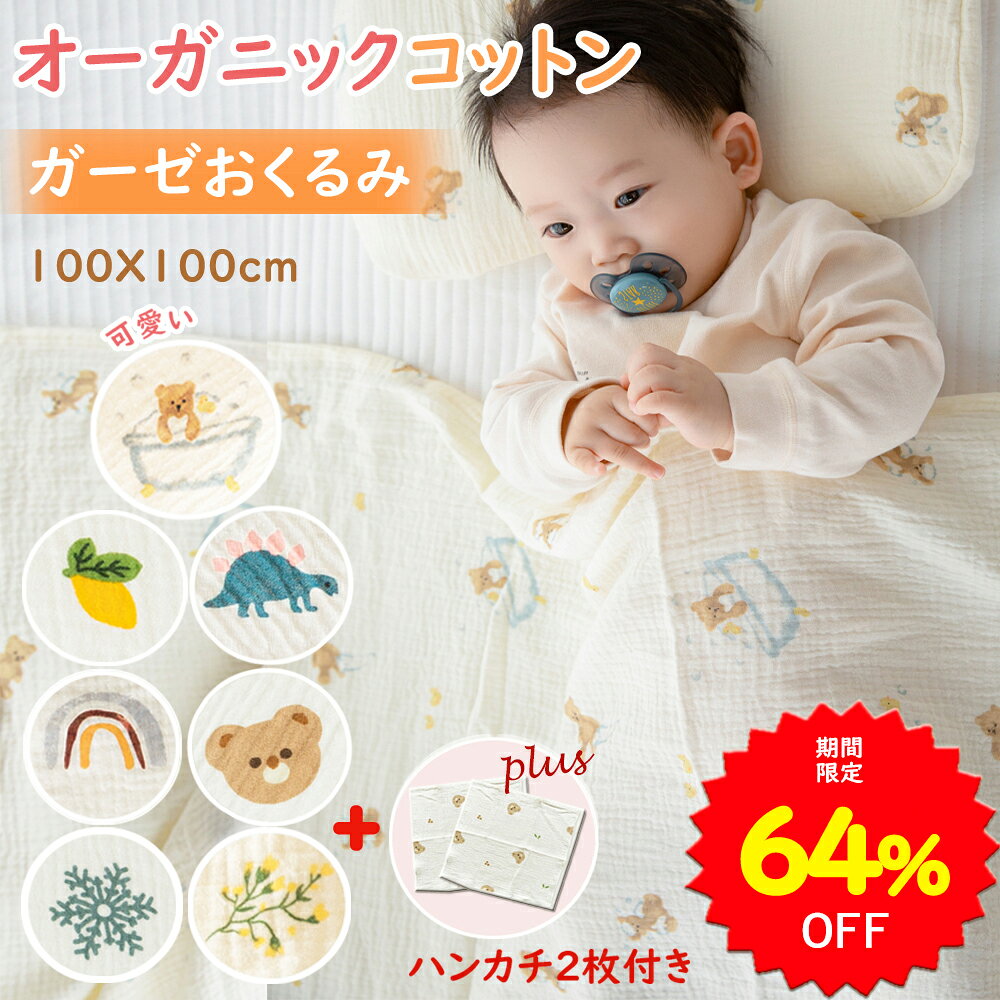 [商品名称]【64%OFFで1050円 スーパーSALE期間限定】【ハンカチ2枚付き】おくるみ ガーゼ おくるみガーゼ ガーゼケット ブランケット タオルケット ベビー 赤ちゃん 新生児 秋冬 冬 ガーゼおくるみ 可愛い おしゃれ お昼寝 秋 通年 ギフト プレゼント 出産準備 退院 コットン 綿100%